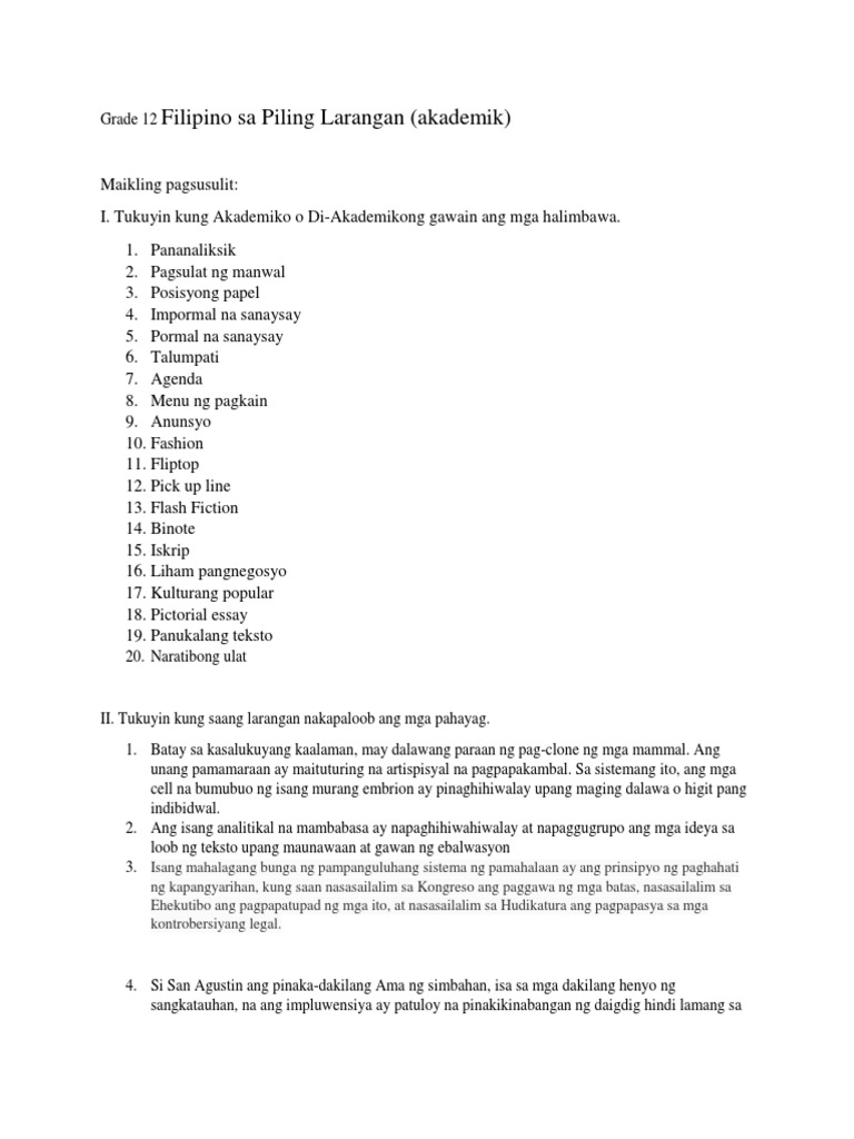 Access to over 100 million course-specific study resources. AKADEMIKONG GAWAIN Narito ang limang halimbawa ng Akademikong Gawain. Full access to over 1 million Textbook Solutions.