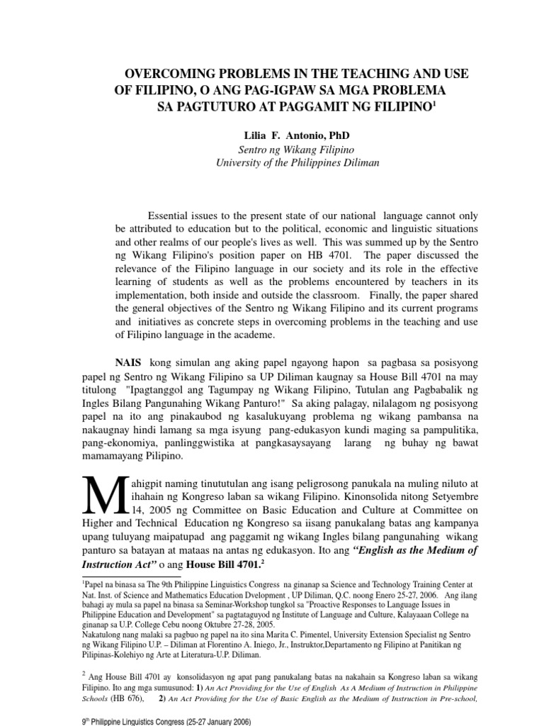 Overcoming Problems In The Teaching And Use Of Filipino Pdf